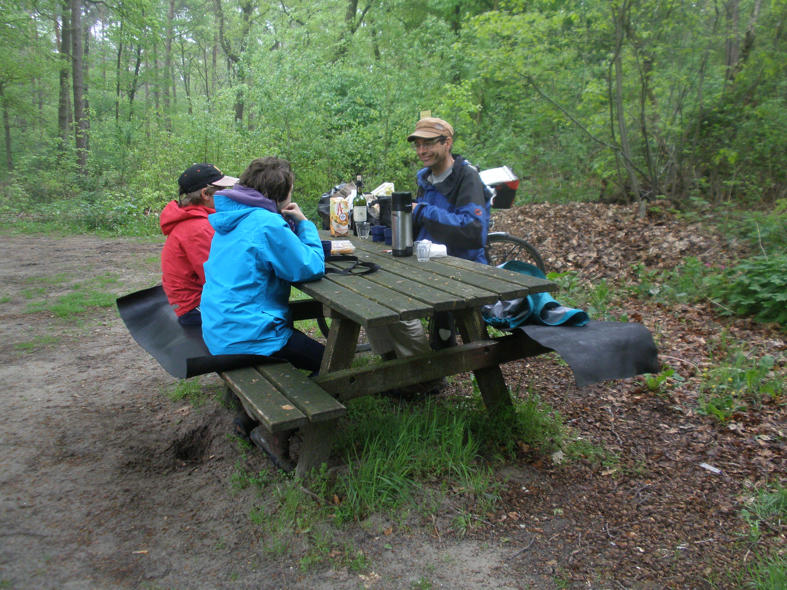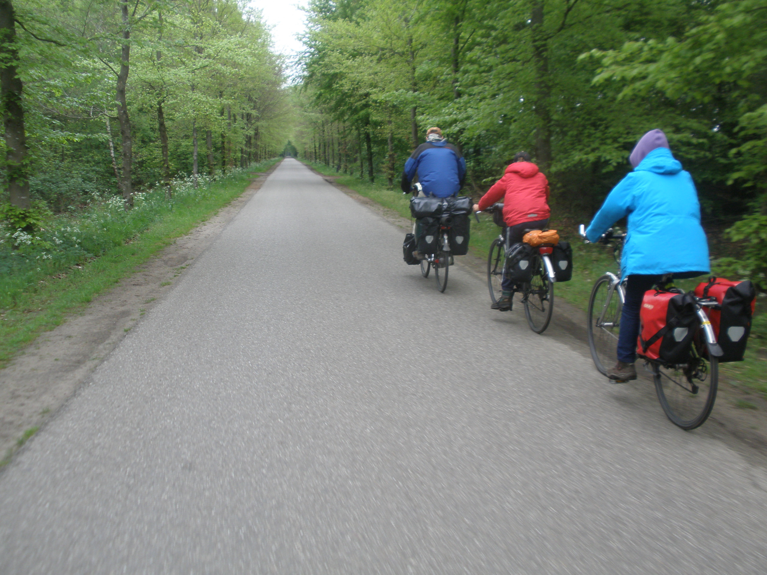 We blijken als gezin heel hip te zijn. In een uitzending van het jeugdjournaal op 29 april was fietsen en kamperen in de natuur zonder luxe één van de coolste dingen die je met je ouders kunt doen. Wij doen het al jaren, fietsen en kamperen in de meivakantie, meestal in eigen land. Dit keer begonnen we in het coulissenlandschap van de Achterhoek in de buurt van het Gelderse Hengelo. Vandaar naar het noorden, door Overijssel over alle ‘bergen’ van de Sallandse Heuvelrug, naar het zuiden van Drente (2 dagen). Vlak bij Zuidwolde hebben we op een hele leuke natuurkamping gestaan. We hadden de tent gelukkig op tijd staan voordat een enorme onweersbui losbarstte. Het is altijd wel spannend in een kleine tent met onweer. De regen kletterde zo hard op het tentdoek dat we elkaar niet eens konden verstaan. We moesten de bel water die in de luifel ontstond om de minuut legen. Maar we hebben de bui goed en droog doorstaan.