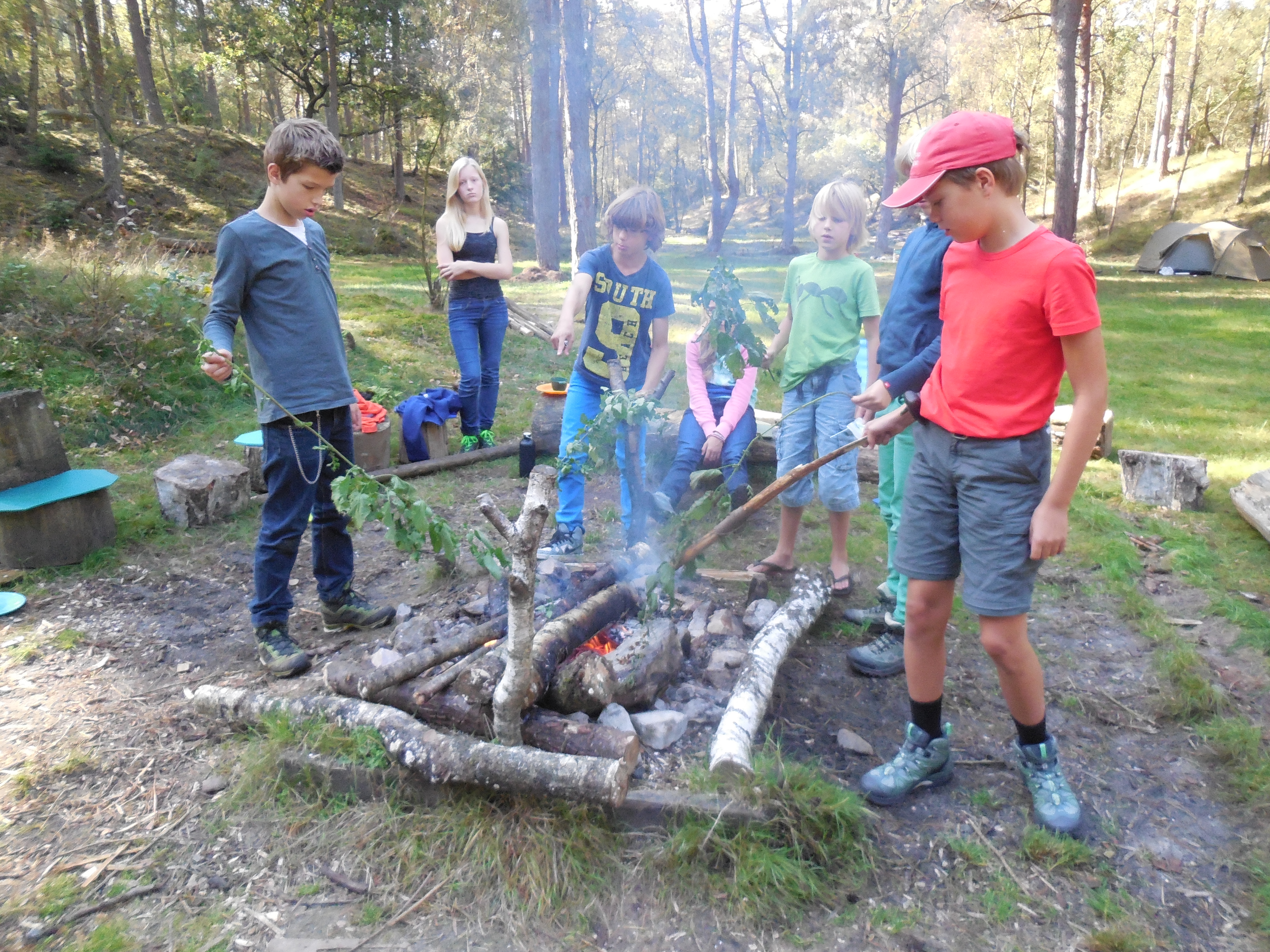 Geen marshmallows boven het vuur, maar brandnetels. Geroosterd met een beetje zout zijn ze best lekker.
