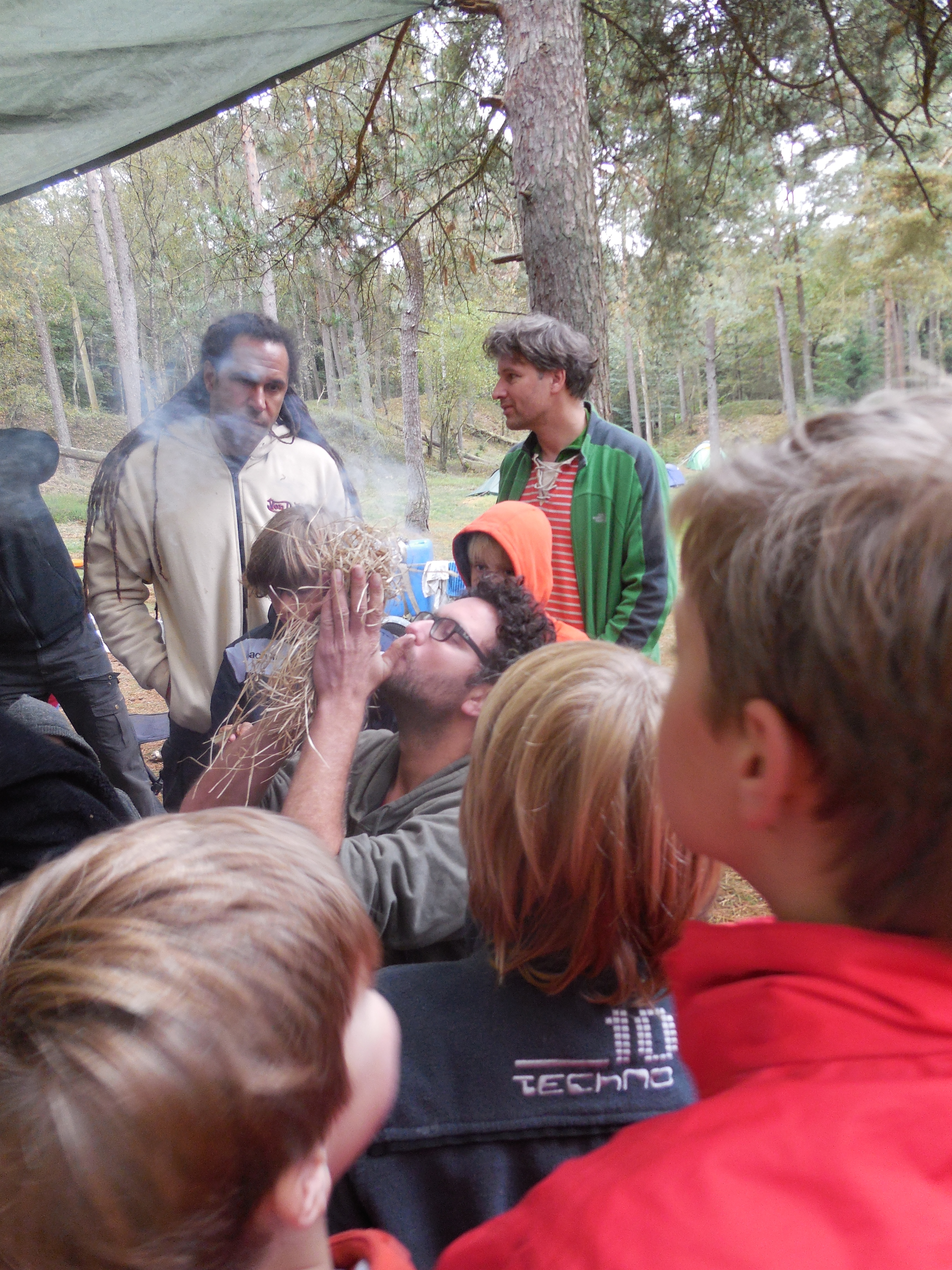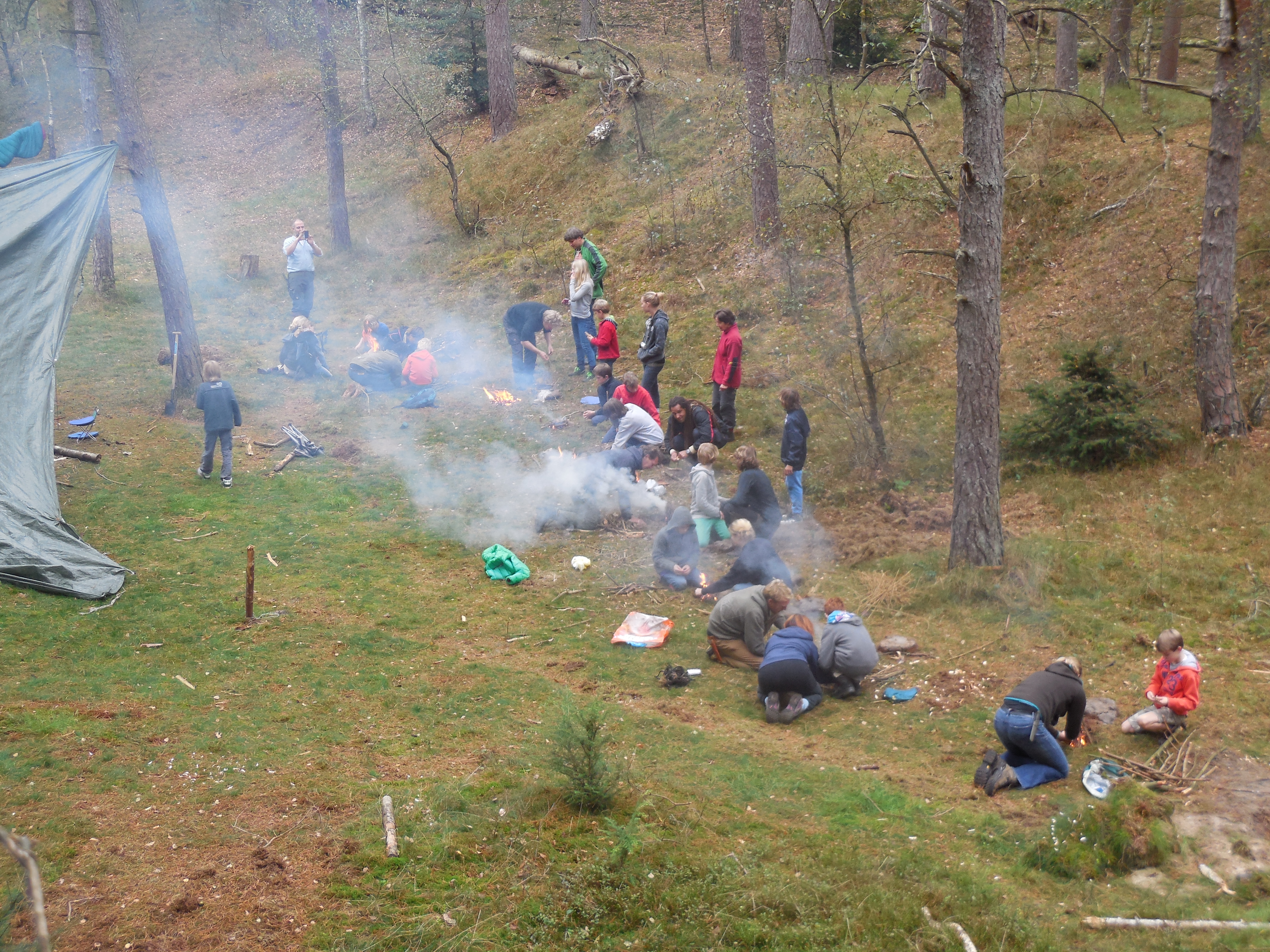 Wij gebruikten een reuze vuurboog en zijn met ons allen misschien wel een uur bezig geweest om vuur te maken. Maar de euforie was dan ook groot toen alle vuurtjes brandden.
