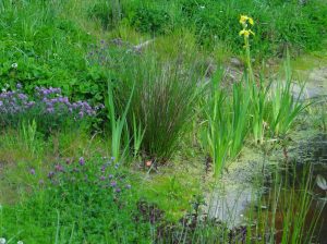 In het midden van de tuin ligt een vijver. Marian vertelt dat na de aanleg van de vijver de biodiversiteit in de hele tuin enorm toenam. Het is een genot om in de tuin te zijn. Marian brengt dan ook veel tijd in de tuin door. Vaak niet eens om te werken, want als het bos eenmaal is aangelegd, hoef je, in tegenstelling tot een gewone moestuin, niet veel meer te doen, behalve oogsten. Ze brengt vooral veel tijd door met kijken en leert daar weer van. De tuin biedt ook een oefening in loslaten. Er is een stuk waar kweekgras en de distels welig tieren en je handen jeuken om die te lijf te gaan. Maar de ervaring leert dat als je het met rust laat, deze uiteindelijk verdwijnen en de bessenstruiken ‘overwinnen’.