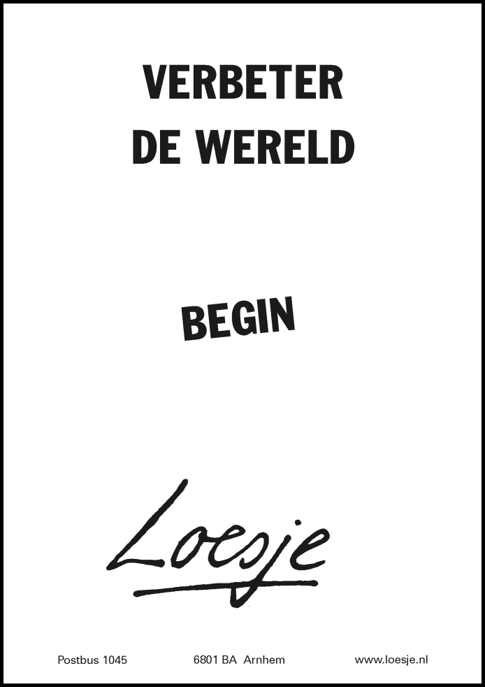 Ik kijk er iets anders tegenaan. Natuurlijk heb we, in onze eigen invloedssfeer, een eigen verantwoordelijkheid voor de keuzes die we dagelijks maken. Ook als er nog geen statiegeld op flesjes en blikjes zit kun je er voor kiezen om deze niet in de berm te gooien maar in de juiste kliko. In de slogan staat echter heel duidelijk het woord ‘begint’. Ik interpreteer dat zo dat duurzame initiatieven van onderop, ingezet door burgers en consumenten een vervolg moeten krijgen in beleid en uitvoering daarvan door de overheid en het bedrijfsleven. Dat we steeds meer zijn gaan consumeren, uitstoten en vervuilen ligt niet zozeer aan de inzet van de slogan, maar aan het gemis van een vervolg.