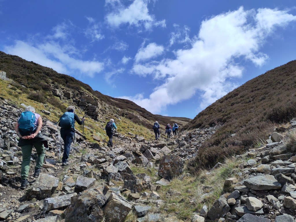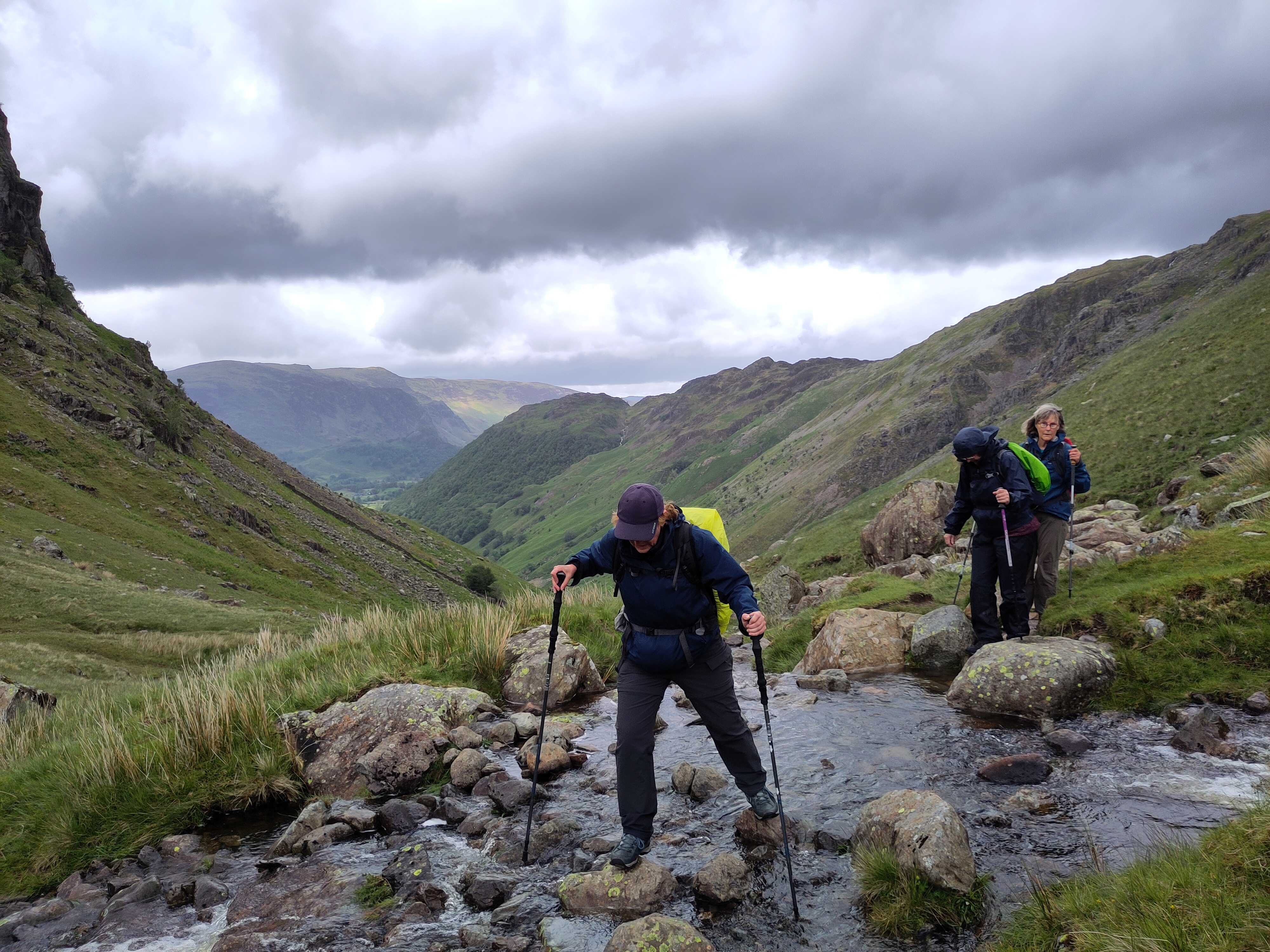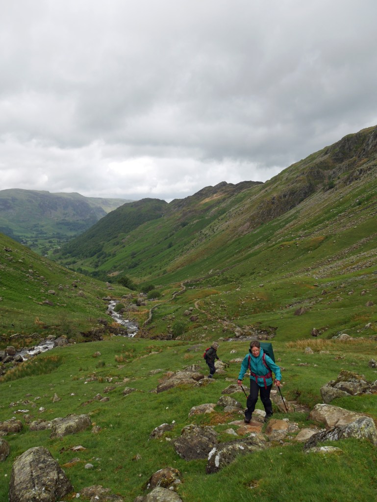 Het is niet de eerste keer dat ik met groepen wandel. Maar het is steeds anders. In de afgelopen jaren heb ik gemerkt dat het van de groep afhangt waar het accent ligt tijdens het wandelen. In het Lake District waren de deelnemers vooral gefascineerd door het landschap. De meesten hadden niet verwacht dat ze in het Lake District het alpine zouden ervaren; het klimmen en dalen, de mooie uitzichten maar ook de intieme bloemrijke dalen. ‘Magisch’ was het woord dat ik van meerdere mensen heb gehoord. Voor mij voelde het overgaan van een pas of zadel soms echt als ‘loslaten’. Nog één blik achterom om te genieten van het mooie dal dat jou omhoog heeft gevoerd om vervolgens opgenomen te worden in nieuwe verten of een nieuw dal om in af te dalen.