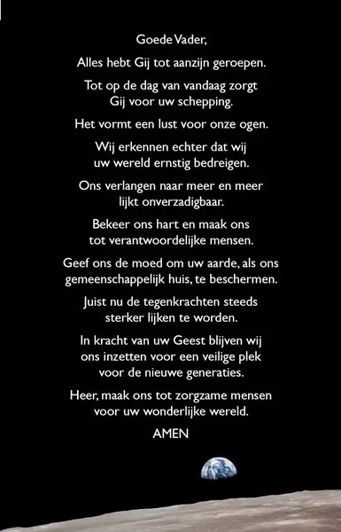 “Iedereen in de samenleving moet via niet-gouvernementele organisaties en belangenorganisaties druk uitoefenen op de regeringen,” klonk het uit de mond van de paus. Met de verkiezingen voor de deur hebben we allemaal de mogelijkheid om invloed uit te oefenen op de samenstelling van de regering. Het aantal kerkgangers loopt weliswaar terug, maar er leven heel veel mensen in Nederland die zich christen voelen en noemen. En aan hen zegt de paus dat het omkijken naar de schepping niet meer iets is wat je er maar zo’n beetje bij doet, als het je uitkomt. Als je een discipel van Jezus bent, hoort het er echt bij.