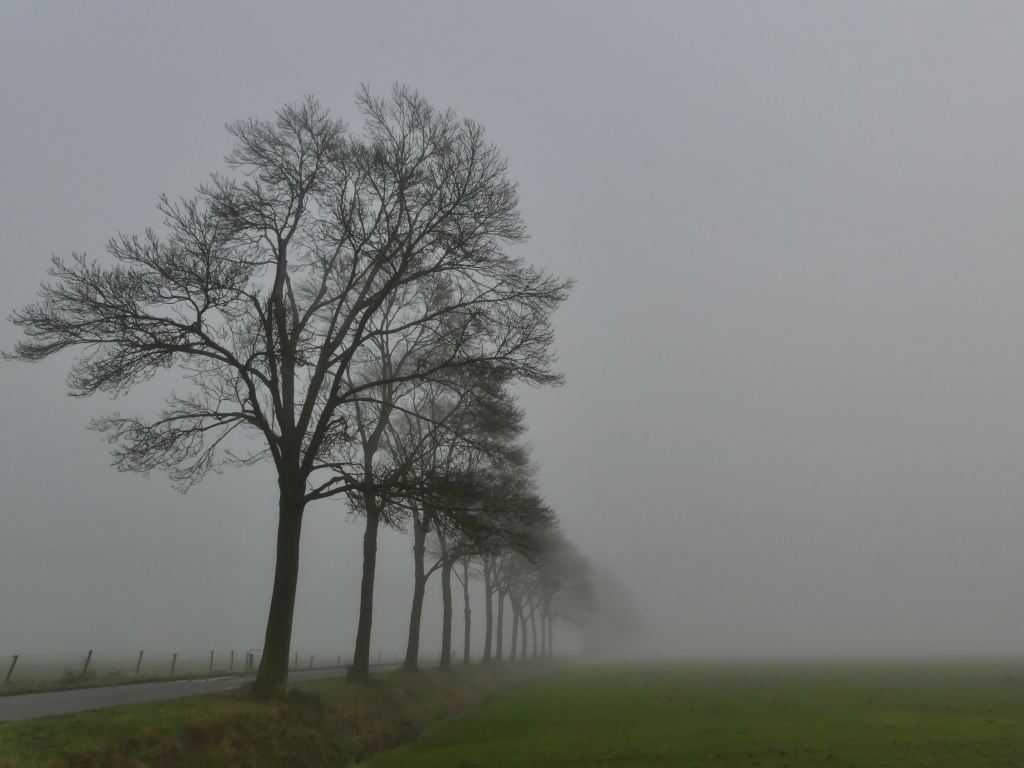 Nu ik deze blog schrijf, thuis in Driebergen, is het ook hier grijs. De hele dag regen, het wil maar niet licht worden. Zulke dagen horen ook bij de herfst. Geen zon die je naar buiten lokt (zoals eerder in de herfst), maar kille regen waardoor je het liefst met een dekentje, een pot thee en een leuk boek op de bank kruipt. Toch was het niet dit soort grijsheid waar mijn zoon aan refereerde. Het was echt het gemis van de gekleurde bomen. “De bomen kleuren hier niet”, zei hij. “De bladeren blijven lang groen, worden dan grijs en vallen af.” En dat kon ik, om me heen kijkend, alleen maar beamen. Ondanks de mooie heldere dag met een laagstaande middagzon, die wel het riet een mystieke uitstraling gaf en de weilanden helder groen deed oplichten, was die niet in staat om de bomen te laten stralen. Die bleven ‘dof.’