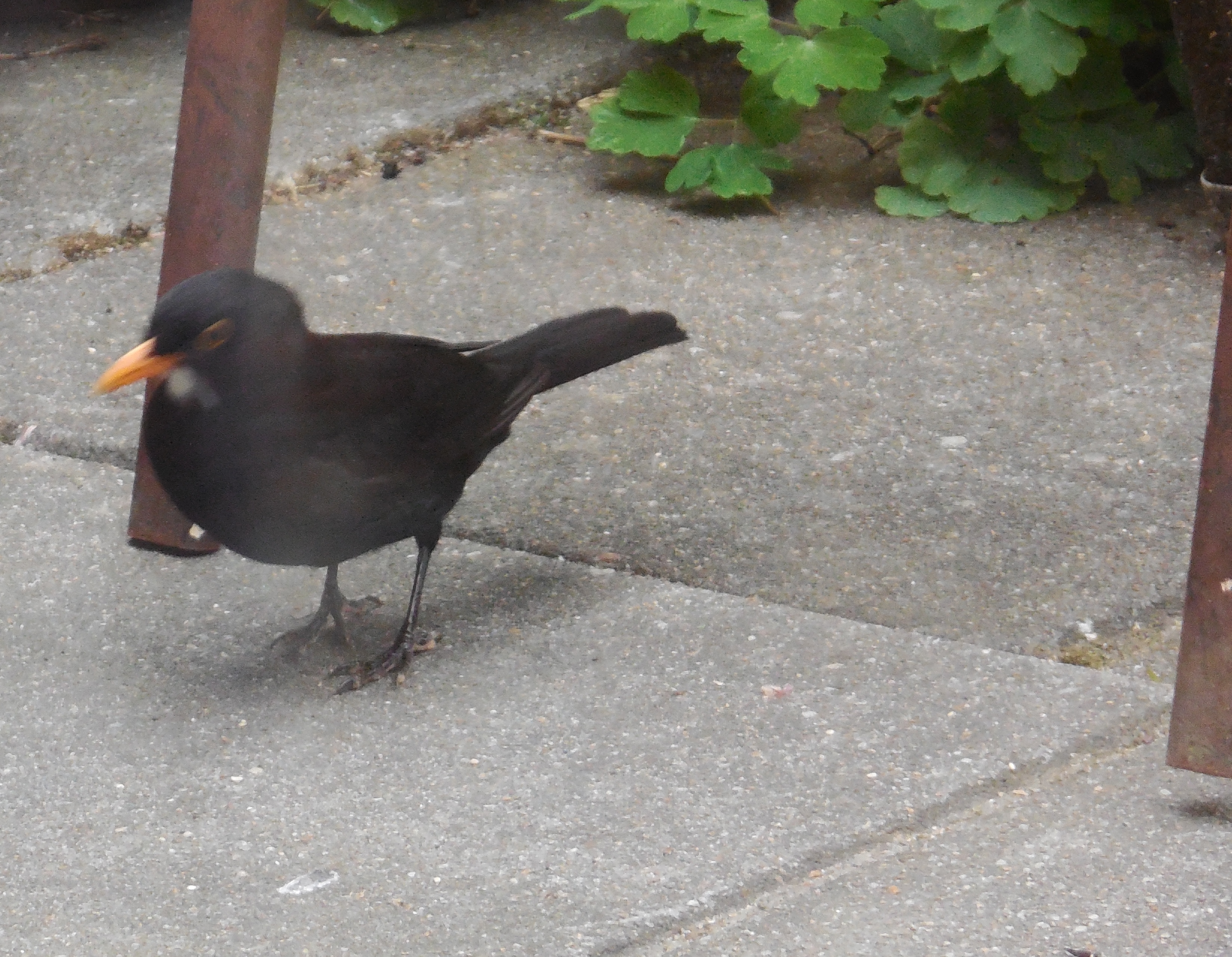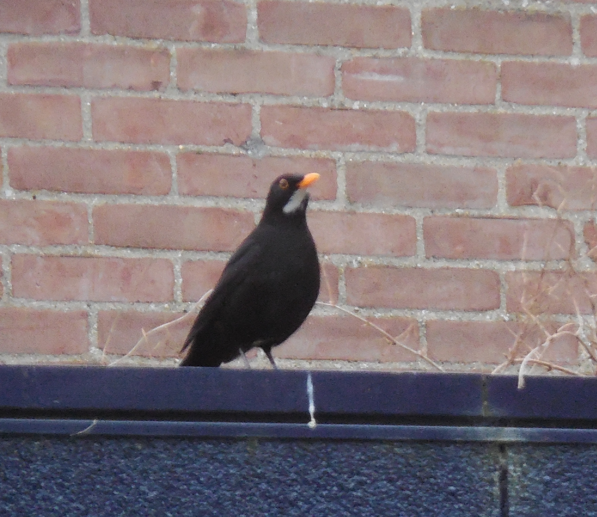 Maar de laatste tijd waren we ook ongerust. Sinds ik meedoe met de tuintelling wil ik Stropdasje fotograferen. Dat lukte al vrij snel, maar ik wilde een foto van dichterbij. En vanaf toen zagen we Stropdasje niet meer. Wel twee andere merelparen die elkaar regelmatig in de veren zitten, maar geen Stropdasje. We misten hem echt en werden zelfs een beetje verdrietig bij het idee dat Stropdasje er niet meer zou zijn. Het doet je toch iets. Een dier met een naam lijkt ons nader te staan, dan zomaar een dier.