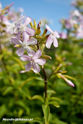 In Europa en ook in Nederland komt trouwens ook een plant voor dat saponine bevat, namelijk zeepkruid, Saponaria officinalis. Deze plant groeit op ruderale, en kalkrijke zandgrond, in ruigten langs rivieren en op spoordijken. Elke keer als ik de plant zie moet ik denken aan Ayla, de hoofdfiguur in de romans van de Aardkinderen. Ayla waste haar haar met zeepkruid. Zij had dat geleerd van Iza, een vrouw van de Stam. ‘Iza vond een ronde steen die goed in de hand lag en stampte het zeepkruid met wat water fijn in een holte van een platte steen die bij de stroom lag. De plant begon een dik sop vol zeepdeeltjes af te geven. Ayla was verrukt toen Iza haar bij de hand nam en de stroom in leidde. Ze vond het water heerlijk. Maar toen ze helemaal nat was, nam de vrouw haar op, zette haar op de steen en sopte haar van hoofd tot voeten in, met inbegrip van haar sliertige en verwarde haar’ Ik was mijn haar alleen met water en gebruik vrijwel nooit meer met shampoo of zeep. Maar tijdens de vakantie is het misschien toch leuk om het eens met zeepkruid te proberen.