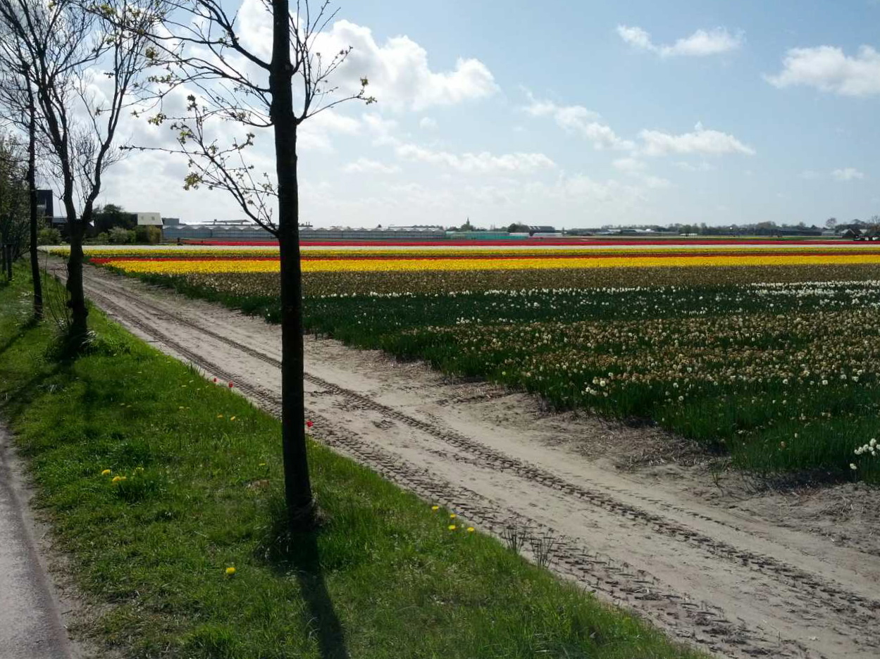 Langs de weg waren veel stalletjes met tulpen te koop; grote bossen, voor weinig geld. Ik heb nog gedacht om aan het eind van de fietstocht een bos te kopen. Wie wil nou niet een kamer vol tulpen voor maar 5 euro. Toch heb ik het niet gedaan. Waarom niet? Omdat ik weet dat in de bollenteelt veel gif wordt gespoten en de bodem vaak chemisch wordt ontsmet. Het is de andere kant van de medaille. Die bollenvelden, ze blijven voor mij heel dubbel. Aan de ene kant kan ik en vele toeristen met mij, genieten van de kleuren en geuren. Maar aan de andere kant trekken ze veel autoverkeer aan en de aanslag die de bollenteelt doet op het milieu kan ik niet uit mijn hoofd zetten als ik daar rondfiets.