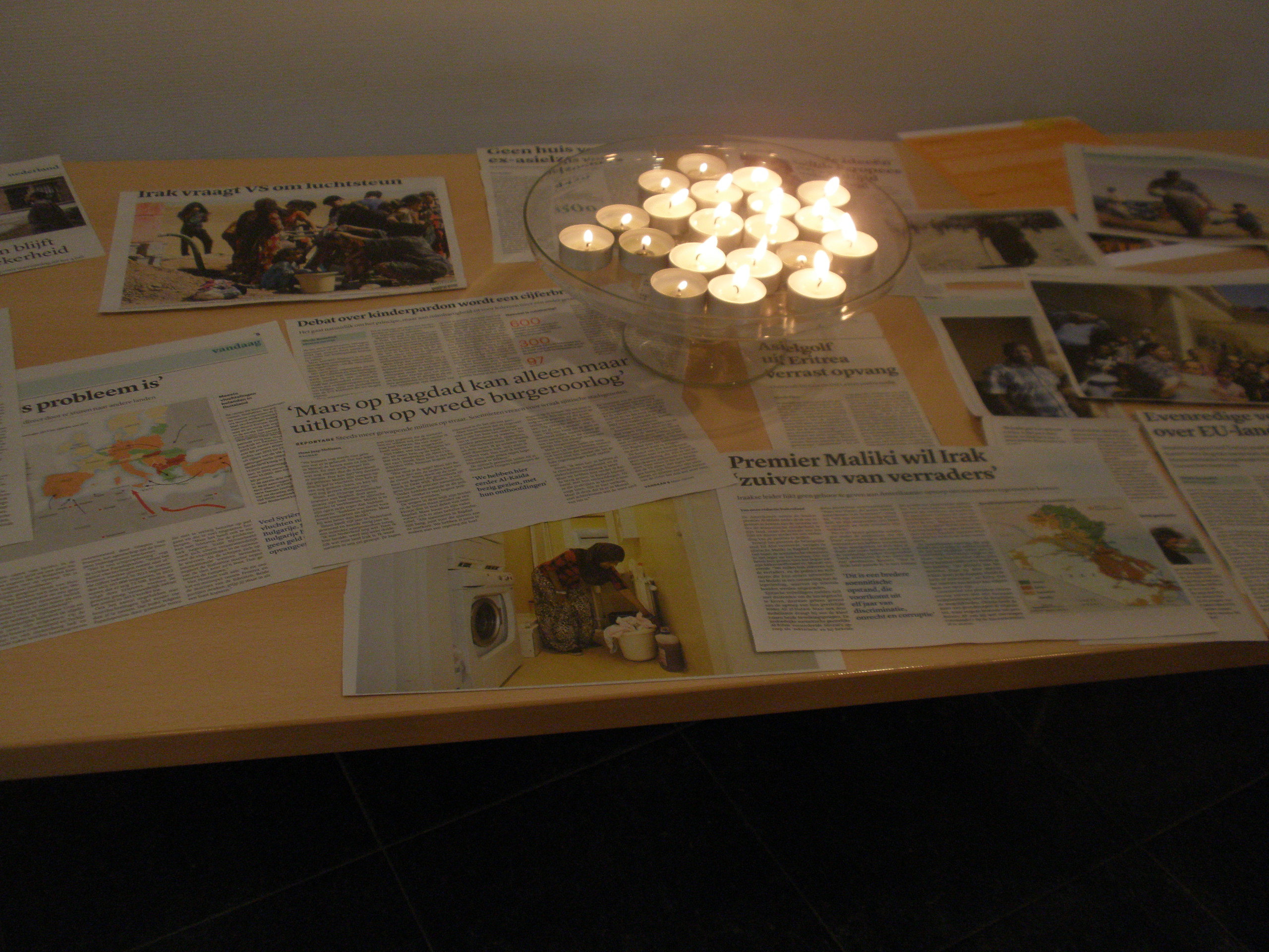 Welkom allemaal bij deze gebedsviering die in het teken staat van de vluchteling. Afgelopen vrijdag was het wereldvluchtelingendag. Wereldwijd wordt er dan aandacht gevraagd voor het lot van de vluchteling en voor vrede. Door de wereld trekt een stoet van ontheemden: vluchtelingen en asielzoekers, op weg naar een leven in vrede en veiligheid, ontsnapt aan geweld van onderdrukking en oorlog. We hoeven alleen maar te denken aan Syrie, Soedan, Irak en de met mensen volgepakte bootjes die elke dag op Lampedusa aankomen, of het juist niet halen. Mensen die hun huis en land hebben verlaten, op weg naar een leven in vrede en veiligheid, biddend voor een betere toekomst.