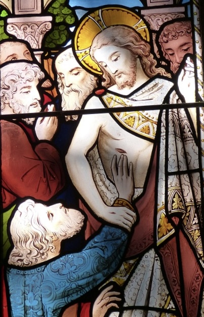 Jezus zou dwars door een afgesloten deur de kamer binnengekomen zijn waar de leerlingen zich uit angst hadden opgesloten, om samen te rouwen om de dood van hun vriend en herinneringen op te halen. “Hij was het echt”, zeiden zijn vrienden. Hij heeft ons zijn wonden laten zien. Nepnieuws, of toch niet? Thomas twijfelt. Hij beschouwt zijn vrienden als een betrouwbare bron. Waarom zouden ze een loopje met hem nemen? En toch…., Hij kan het niet klakkeloos aannemen. Daarvoor is de gebeurtenis te wonderbaarlijk. Maar het bij voorbaat afschrijven doet hij ook niet. Het liefst zou hij het willen onderzoeken.